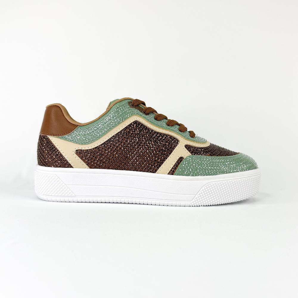 Os detalhes em paetê trazem um toque de brilho e modernidade ao design, tornando este tênis ideal para complementar seus looks casuais com muito charme e praticidade. Aposte!